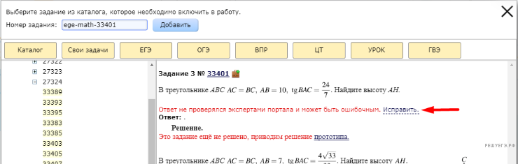 Здравствуйте! В курсе математика профильный уровень при составлении вариантов из заданий без решений, ответ можно только увидеть, когда ученик отправил ДЗ. И я вижу все ответы этих заданий. На некоторые из них вместо верных ответов указано «-» или «0» или просто пусто. Вследствие этого это задание показывается неверным — красным. Как я могу вбить правильный ответ или отметить в ДЗ ученика, что это задание он сделал верно? Например, номера заданий: 33401, 33595, 55267.