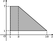 Найдите площадь прямоугольной трапеции, вершины которой имеют координаты (1;1), (10;1), (3;7), (1;7).