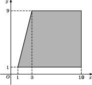 Найдите площадь прямоугольной трапеции, вершины которой имеют координаты (1;1), (10;1), (10;9), (3;9).