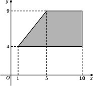 Найдите площадь прямоугольной трапеции, вершины которой имеют координаты (1;4), (10;4), (10;9), (5;9).
