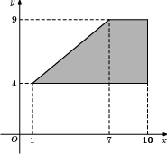 Найдите площадь прямоугольной трапеции, вершины которой имеют координаты (1;4), (10;4), (10;9), (7;9).