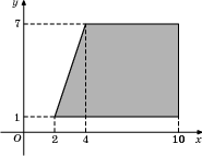 Найдите площадь прямоугольной трапеции, вершины которой имеют координаты (2;1), (10;1), (10;7), (4;7).