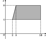 Найдите площадь прямоугольной трапеции, вершины которой имеют координаты (2;4), (10;4), (10;8), (3;8).