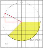 Най­ди­те (в см2) пло­щадь S за­кра­шен­ной фи­гу­ры, изоб­ра­жен­ной на клет­ча­той бу­ма­ге с раз­ме­ром клет­ки 1 см \times 1 см (см. рис.). В от­ве­те за­пи­ши­те  дробь: чис­ли­тель: S, зна­ме­на­тель: конец дроби pi.