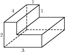 Найдите объем многогранника, изображенного на рисунке (все двугранные углы прямые).