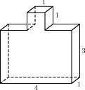 Площадь поверхности заданного многогранника равна сумме площадей прямоугольников со сторонами 1, 3, 4 и 1, 2, 3, уменьшенной на удвоенную площадь прямоугольника со сторонами 2, 3: