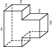 Найдите площадь поверхности многогранника, изображенного на рисунке (все двугранные углы прямые).