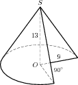 Найдите объем V части конуса, изображенной на рисунке. В ответе укажите