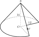 Найдите объем V части конуса, изображенной на рисунке. В ответе укажите