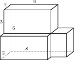 Найдите объем многогранника, изображенного на рисунке (все двугранные углы прямые).