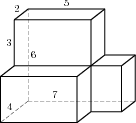 Найдите площадь поверхности многогранника, изображенного на рисунке (все двугранные углы прямые).