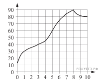 На гра­фи­ке по­ка­зан про­цесс разо­гре­ва дви­га­те­ля лег­ко­во­го ав­то­мо­би­ля. На оси абс­цисс от­кла­ды­ва­ет­ся время в ми­ну­тах, про­шед­шее от за­пус­ка дви­га­те­ля, на оси ор­ди­нат  — тем­пе­ра­ту­ра дви­га­те­ля в гра­ду­сах Цель­сия.