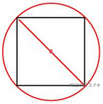 Версия для печати и копирования в MS WordНайдите радиус окружности, описанной около квадрата со стороной, равной