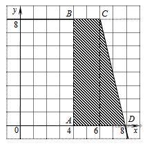 Разность значений первообразной в точках 8 и 4 равна площади выделенной на рисунке трапеции