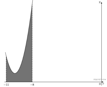 Пло­щадь вы­де­лен­ной фи­гу­ры равна раз­но­сти зна­че­ний пер­во­об­раз­ных, вы­чис­лен­ных в точ­ках  минус 9 и  минус 11.