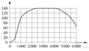Версия для печати и копирования в MS WordНа графике показана зависимость крутящего момента автомобильного двигателя от числа оборотов в минуту. На горизонтальной оси отмечено число оборотов в минуту, на вертикальной оси — крутящий момент в Чтобы автомобиль начал движение, крутящий момент должен быть не менее 20