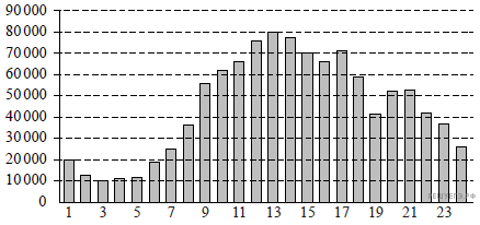 Версия для печати и копирования в MS WordНа диаграмме показано количество посетителей сайта РИА «Новости» в течение каждого часа 8 декабря 2009 года. По горизонтали указывается время (в часах), по вертикали — количество посетителей сайта на протяжении этого часа.