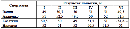 Версия для печати и копирования в MS WordВ соревнованиях по метанию молота участники показали следующие результаты.