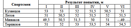 Версия для печати и копирования в MS WordВ соревнованиях по метанию молота участники показали следующие результаты.