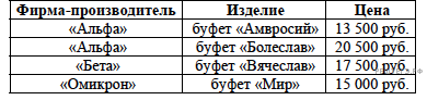 В прейскуранте приведены цены на четыре буфета. Определите, продажа какого буфета наиболее выгодна для салона. В ответе запишите, сколько рублей поступит в доход салона от продажи этого буфета.