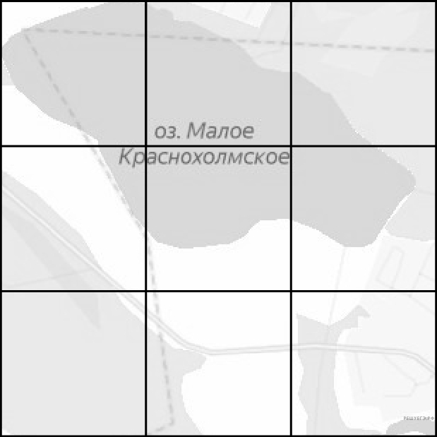 На рисунке изображён план местности (шаг сетки плана соответствует расстоянию 1 км на местности). Оцените, скольким квадратным километрам равна площадь озера Малое Краснохолмское, изображённого на плане. Ответ округлите до целого числа.