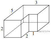 Версия для печати и копирования в MS WordДеталь имеет форму изображённого на рисунке многогранника (все двугранные углы прямые). Числа на рисунке обозначают длины рёбер в сантиметрах. Найдите объём этой детали. Ответ дайте в кубических сантиметрах.