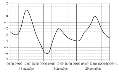 На рисунке показано изменение температуры воздуха на протяжении трех суток. По горизонтали указывается дата и время суток, по вертикали — значение температуры в градусах Цельсия. Определите по рисунку наименьшую температуру воздуха 19 декабря. Ответ дайте в градусах Цельсия.
