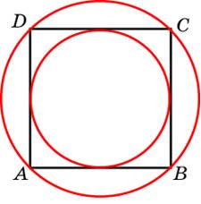 Сторона квадрата вдвое больше радиуса вписанной в него окружности. Поэтому AВ = Радиус описанной вокруг квадрата окружности равен половине его диагонали. Поэтому