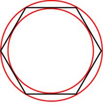 описан правильный шестиугольник. Найдите радиус окружности, описанной около этого шестиугольника.