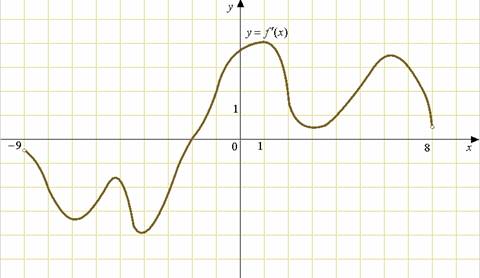На рисунке изображен график производной функции f(x), определенной на интервале (−8; 4). В какой точке отрезка [−7; −3] f(x) принимает наименьшее значение?