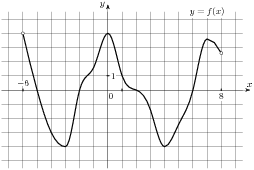 На ри­сун­ке изоб­ра­жен гра­фик функ­ции y  =  f(x), опре­де­лен­ной на ин­тер­ва­ле (−6; 8). Опре­де­ли­те ко­ли­че­ство целых точек, в ко­то­рых про­из­вод­ная функ­ции по­ло­жи­тель­на.