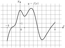 На ри­сун­ке изоб­ра­жен гра­фик функ­ции y  =  f(x), опре­де­лен­ной на ин­тер­ва­ле (−6; 8). Опре­де­ли­те ко­ли­че­ство целых точек, в ко­то­рых про­из­вод­ная функ­ции по­ло­жи­тель­на.