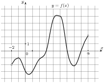 На ри­сун­ке изоб­ра­жен гра­фик функ­ции y  =  f(x), опре­де­лен­ной на ин­тер­ва­ле (−6; 8). Опре­де­ли­те ко­ли­че­ство целых точек, в ко­то­рых про­из­вод­ная функ­ции по­ло­жи­тель­на.