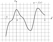 На ри­сун­ке изоб­ра­жен гра­фик функ­ции y  =  f(x), опре­де­лен­ной на ин­тер­ва­ле (−6; 8). Опре­де­ли­те ко­ли­че­ство целых точек, в ко­то­рых про­из­вод­ная функ­ции по­ло­жи­тель­на.
