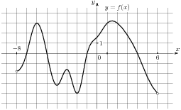 На ри­сун­ке изоб­ра­жен гра­фик функ­ции y  =  f(x), опре­де­лен­ной на ин­тер­ва­ле (−6; 8). Опре­де­ли­те ко­ли­че­ство целых точек, в ко­то­рых про­из­вод­ная функ­ции по­ло­жи­тель­на.
