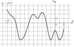 На ри­сун­ке изоб­ра­жен гра­фик функ­ции y=f левая круг­лая скоб­ка x пра­вая круг­лая скоб­ка , опре­де­лен­ной на ин­тер­ва­ле  левая круг­лая скоб­ка минус 11, 2 пра­вая круг­лая скоб­ка . Най­ди­те ко­ли­че­ство точек, в ко­то­рых ка­са­тель­ная к гра­фи­ку функ­ции па­рал­лель­на пря­мой y= минус 6.
