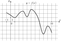 На рисунке изображен график функции y = f(x), определенной на интервале (−2; 12). Найдите сумму точек экстремума функции f(x).