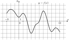 На рисунке изображен график функции y = f(x), определенной на интервале (−2; 12). Найдите сумму точек экстремума функции f(x).