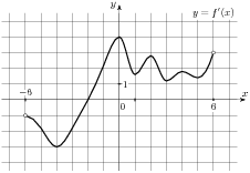 На рисунке изображен график производной функции f(x), определенной на интервале (−8; 4). В какой точке отрезка [−7; −3] f(x) принимает наименьшее значение?