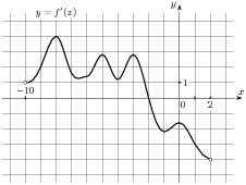 На рисунке изображен график производной функции f(x), определенной на интервале (−8; 4). В какой точке отрезка [−7; −3] f(x) принимает наименьшее значение?