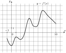 На рисунке изображен график производной функции f(x), определенной на интервале (−8; 4). В какой точке отрезка [−7; −3] f(x) принимает наименьшее значение?