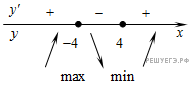 Определим знаки производной функции и изобразим на рисунке поведение функции: