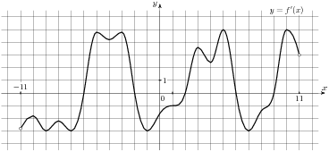 На рисунке изображен график производной функции f(x), определенной на интервале (−11; 11). Найдите количество точек экстремума функции f(x) на отрезке [−10; 10].