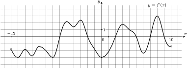Точки экстремума соответствуют точкам смены знака производной. Производная меняет знак в точках −6, −2, 2, 6, 9. Таким образом, на отрезке [−10; 10] функция имеет