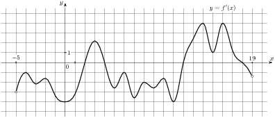 На рисунке изображен график производной функции f(x), определенной на интервале (−7; 14). Найдите количество точек максимума функции f(x) на отрезке [−6; 9].