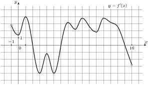 Точки экстремума соответствуют точкам смены знака производной. Производная меняет знак в точках −6, −2, 2, 6, 9. Таким образом, на отрезке [−10; 10] функция имеет
