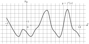 На рисунке изображен график производной функции f(x), определенной на интервале (−18; 6). Найдите количество точек минимума функции f(x) на отрезке [−13; 1].