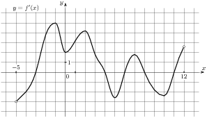 На рисунке изображен график производной функции f(x), определенной на интервале (−18; 6). Найдите количество точек минимума функции f(x) на отрезке [−13; 1].