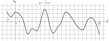 На рисунке изображен график производной функции f(x), определенной на интервале (−7; 14). Найдите количество точек максимума функции f(x) на отрезке [−6; 9].