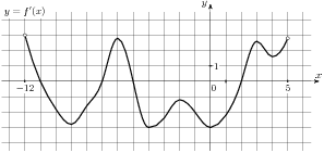 На рисунке изображен график производной функции f(x), определенной на интервале (−18; 6). Найдите количество точек минимума функции f(x) на отрезке [−13; 1].